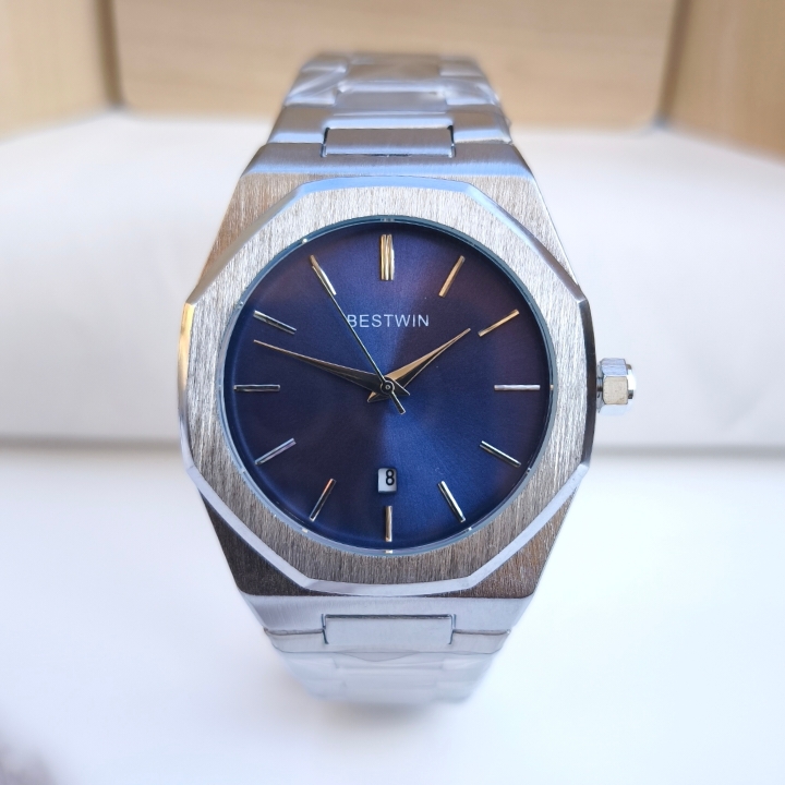 ساعت مردانه استیل نقره ای بست وین bestwin قفل پروانه ای