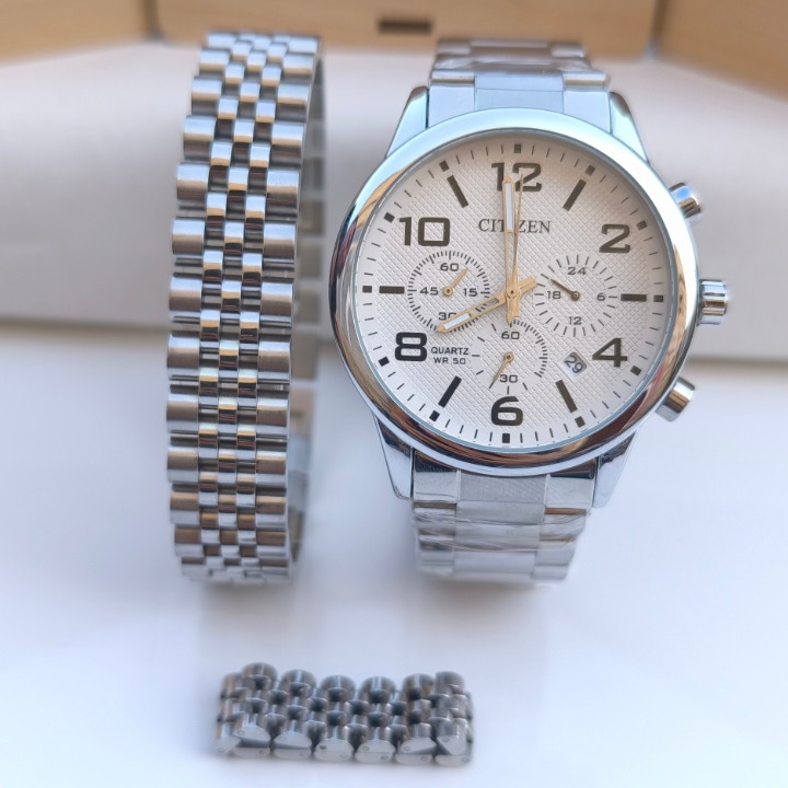ساعت دستبند انگشتر مردانه نقره ای ست سیتیزن