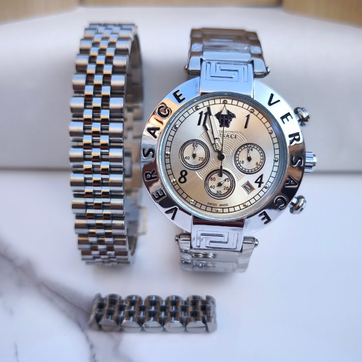 ست ساعت دستبند انگشتر مردانه ورساچه استیل
