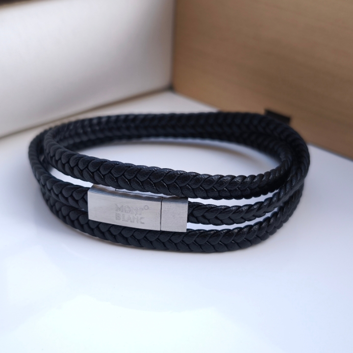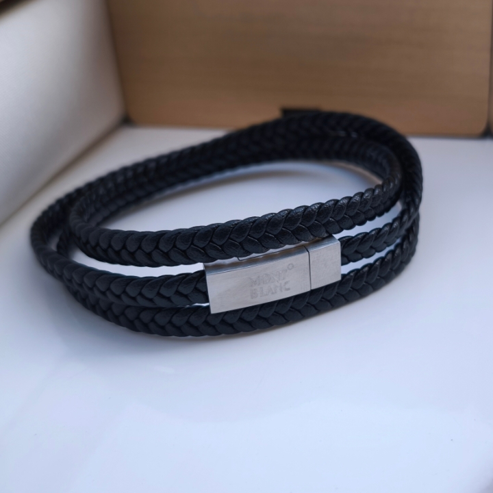 دستبند چرمی مردانه مونتبلانک سه دور قفل مگنتی