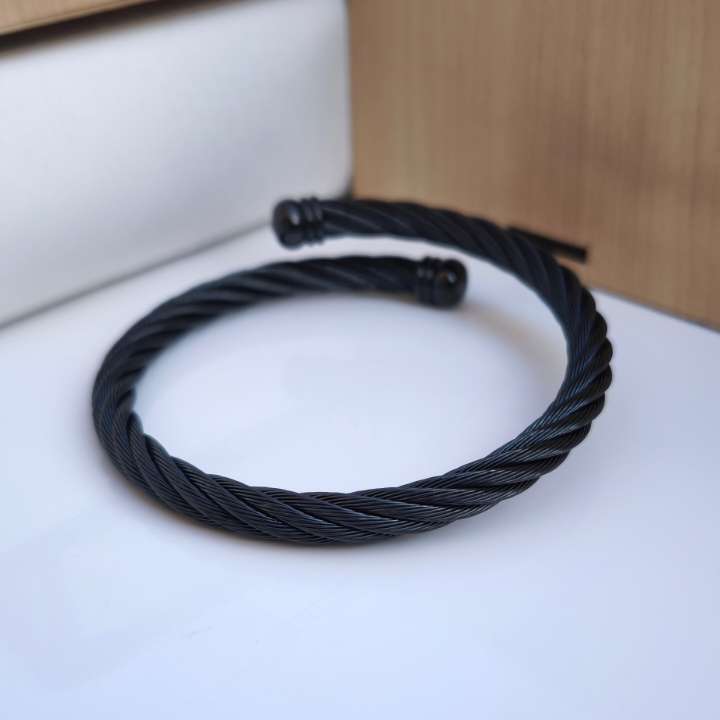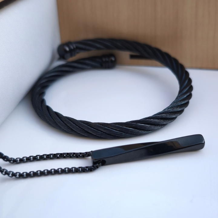 ست گردنبند و بنگل مردانه مشکی استیل