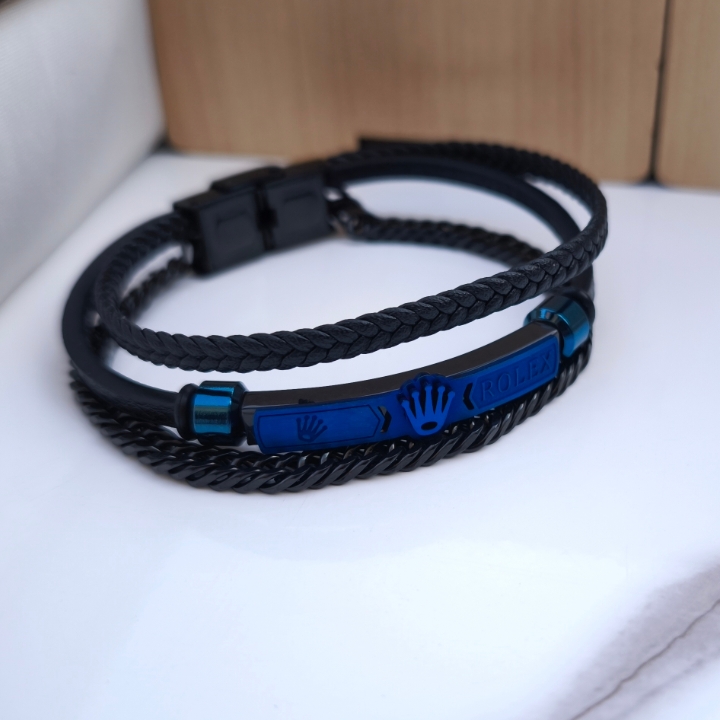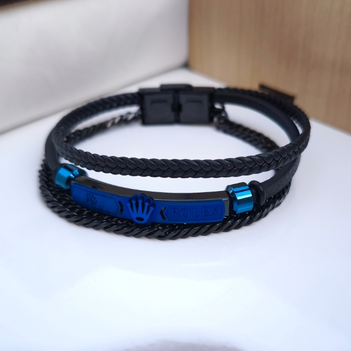 دستبند مردانه چرمی رولکس سه دور ، ترکیبی بینظیر از طراحی مدرن ، کیفیت بالا و استایل خاص است. این دستبند با رنگ مشکی و بافت زیبا ، جلوهای اسپرت و در عین حال شیک به استایل روزمره یا رسمی شما میبخشد.