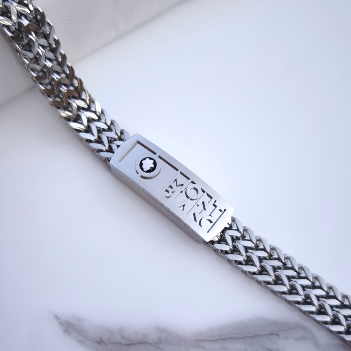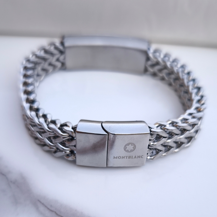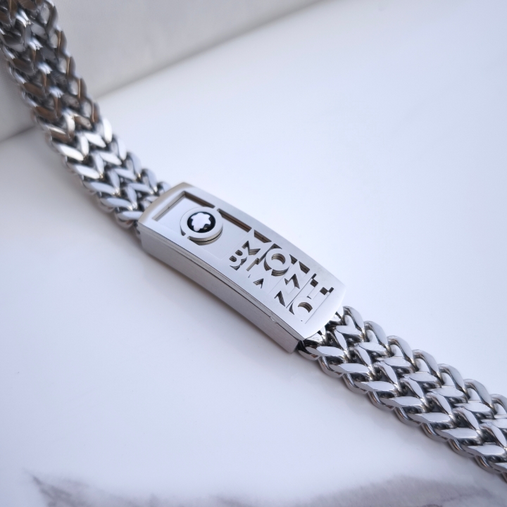دستبند مونتبلانک نقره ای مردانه استیل بافت زنجیری قفل مگنتی