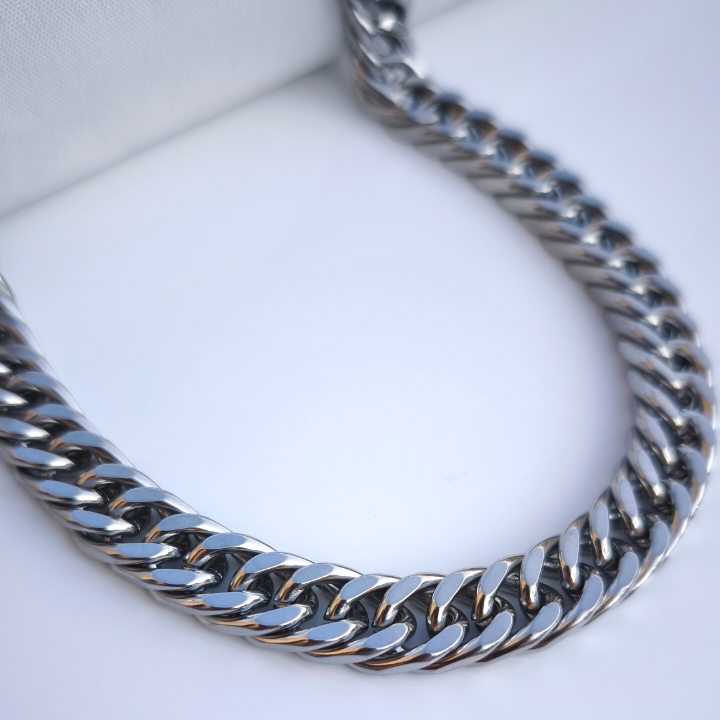 این زنجیر مردانه با طراحی کلاسیک کارتیر و رنگ نقرهای ، انتخابی شیک و ماندگار برای آقایانیست که به استایل خاص و اصیل علاقهمندند. ساختهشده از استیل ضد زنگ و رنگ ثابت. در برابر تعریق ، رطوبت و شستشو مقاوم بوده و در استفاده روزمره یا مجالس رسمی، درخشش خود را حفظ میکند.