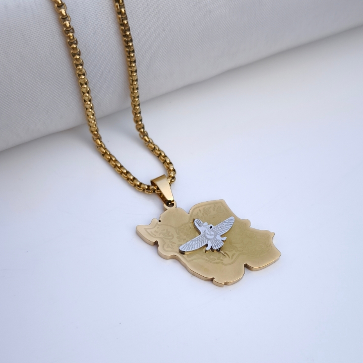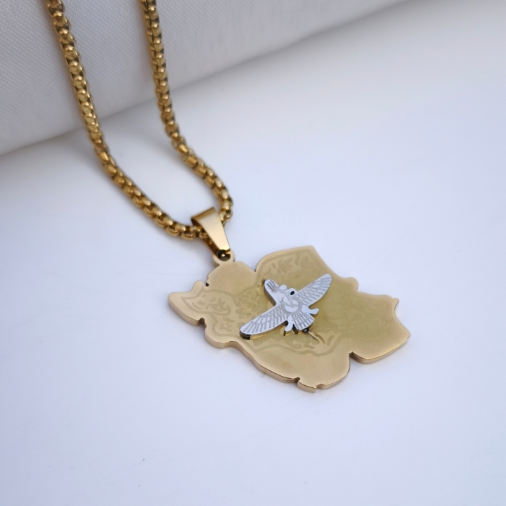 گردنبند نقشه ایران با نشان فروهر طلایی استیل همراه زنجیر ویتالی