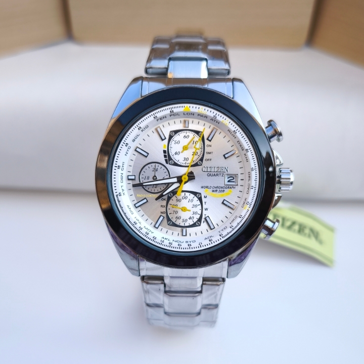 ساعت سیتیزن مردانه نقره ای سه موتور استیل
