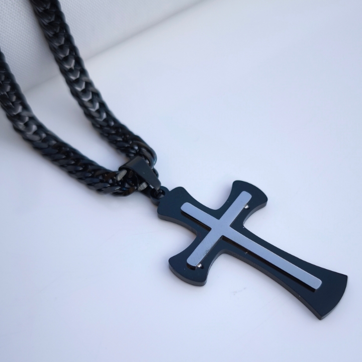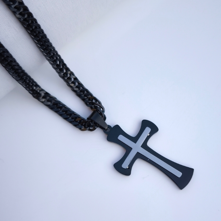 گردنبند صلیب مشکی استیل همراه زنجیر کارتیر ۴میل