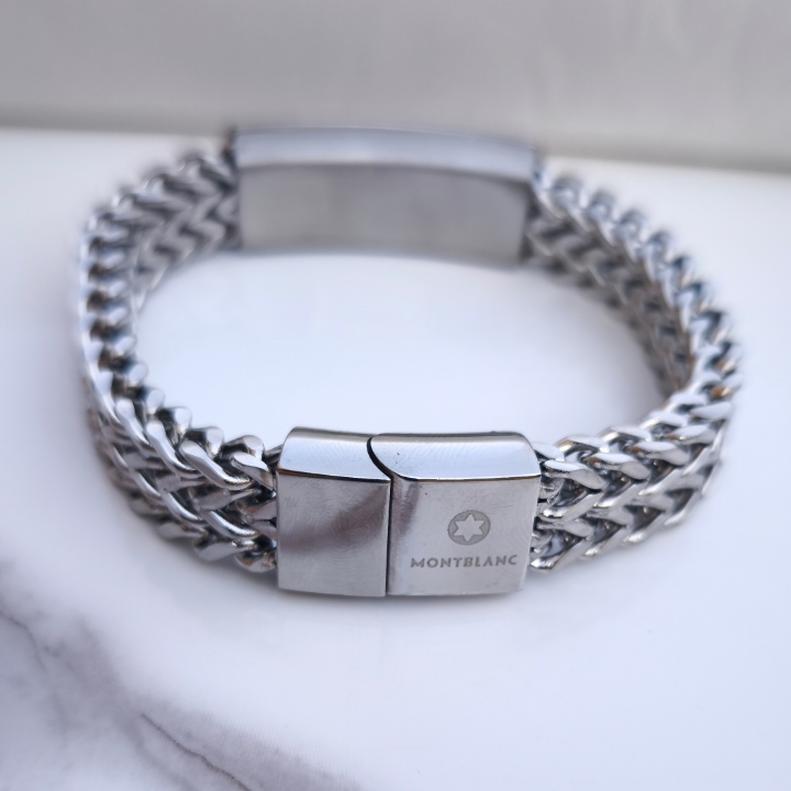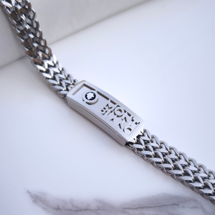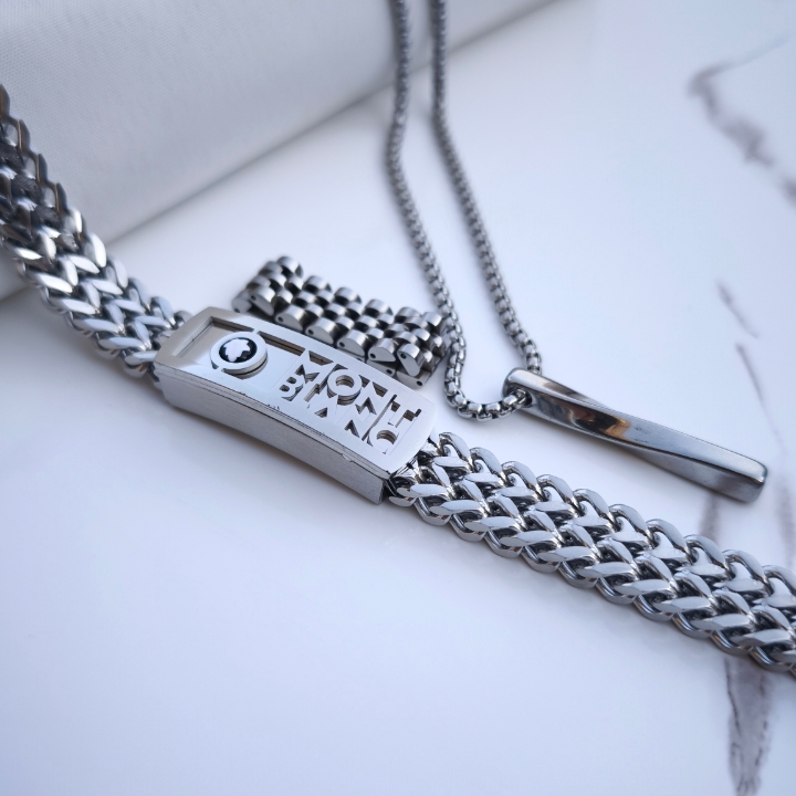 ست دستبند و انگشتر مردانه مونت بلانک استیل رنگ ثابت نقره ای