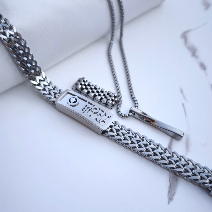 این ست لوکس مردانه از برند مونتبلانک ، ترکیبی بینظیر از طراحی مدرن و کیفیت بالا است. ساختهشده از استیل ضد زنگ با رنگ ثابت ، در برابر رطوبت، تعریق و شستشو مقاوم بوده و درخشش خود را حفظ میکند.