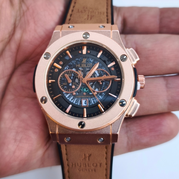 خرید ساعت هابلوت مردانه طرح سه موتور چرمی شیک ارزان