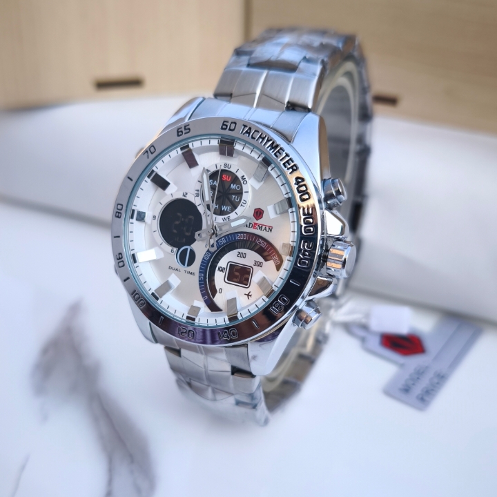خرید ساعت مردانه عقربه ای دیجیتالی استیل نقره ای شیک ارزان مناسب هدیه Kademan