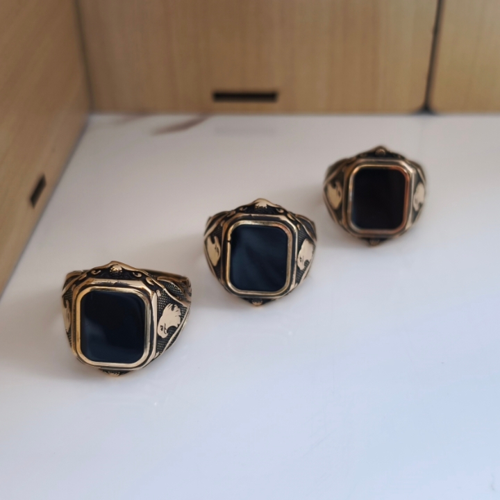 انگشتر مردانه نگین دار طلایی رنگ ثابت سیاه قلم