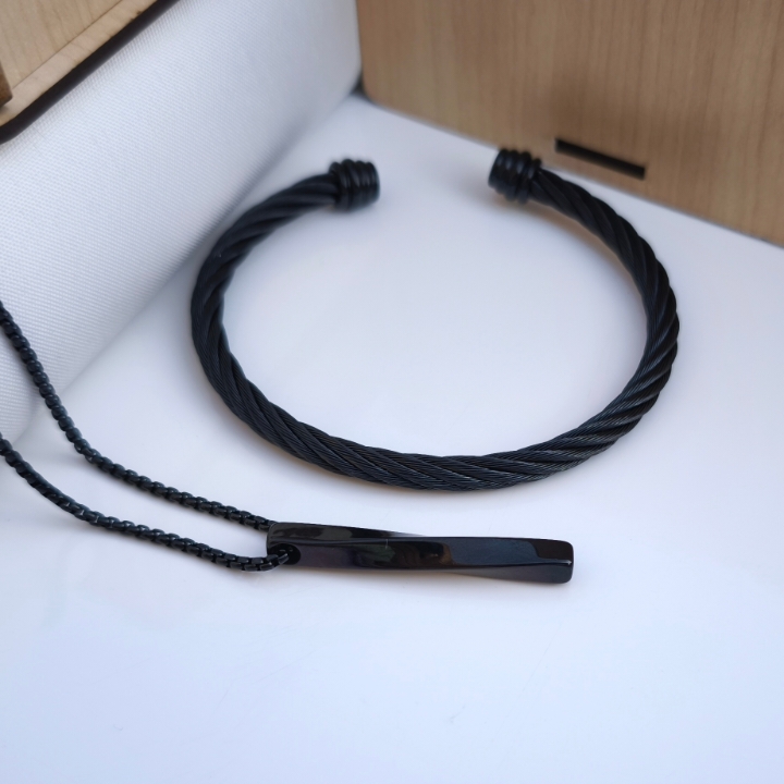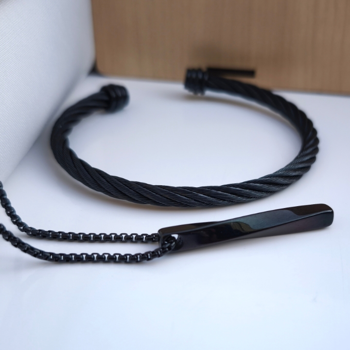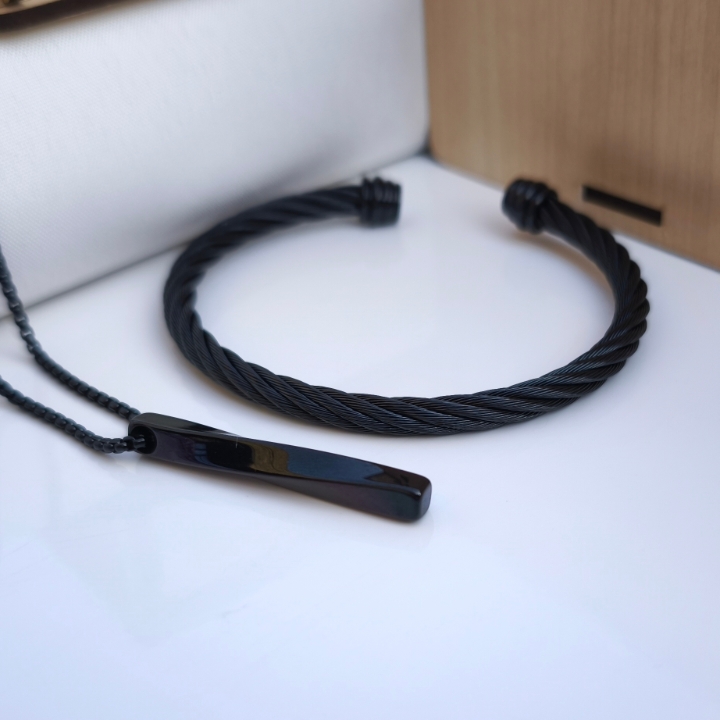 اگر دنبال یه ست شیک و خاص برای تکمیل استایل مردونهت هستی، این ست گردنبند و دستبند استیل مشکی ، دقیقاً همون چیزیه که میخوای!