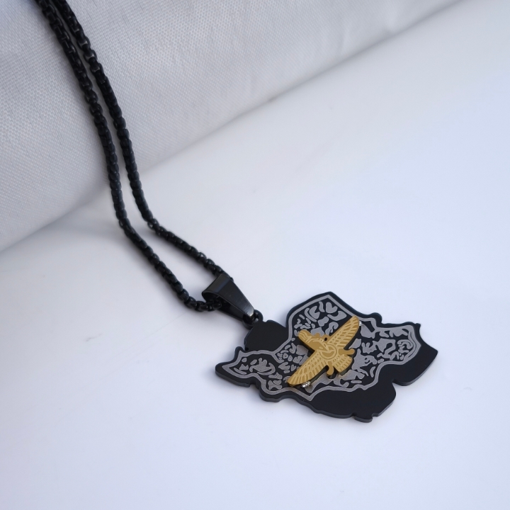 گردنبند نقشه ایران با نشان فروهر مشکی استیل همراه زنجیر ویتالی