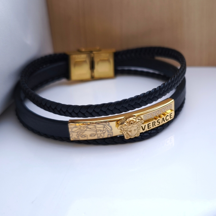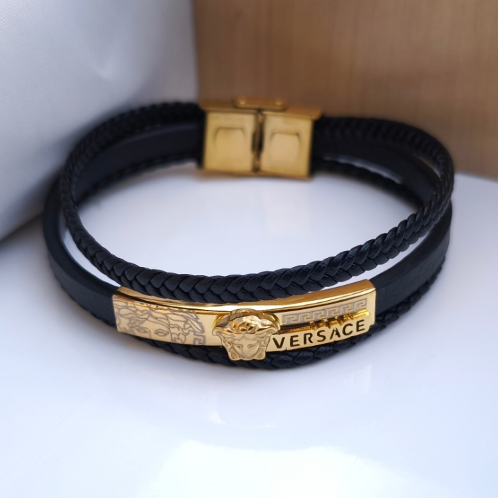 دستبند چرمی مردانه ورساچه سه دور مشکی