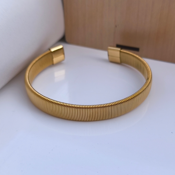 دستبند و بنگل مردانه طلایی استیل رنگ ثابت، فریسایز و قابل شستشو