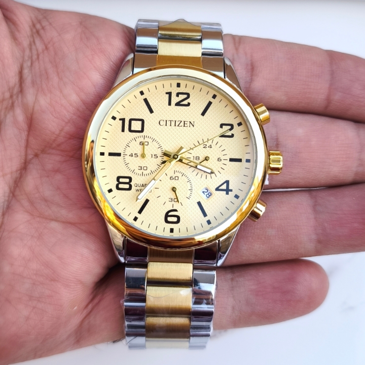 ساعت سیتیزن مردانه سه موتور طلایی نقره ای استیل