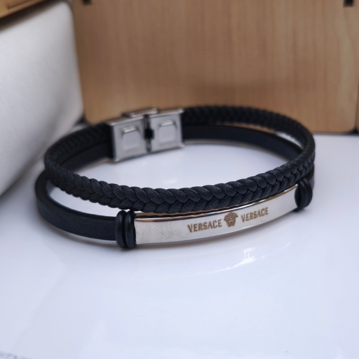 دستبند ورساچه چرمی مشکی اسپرت دو دور