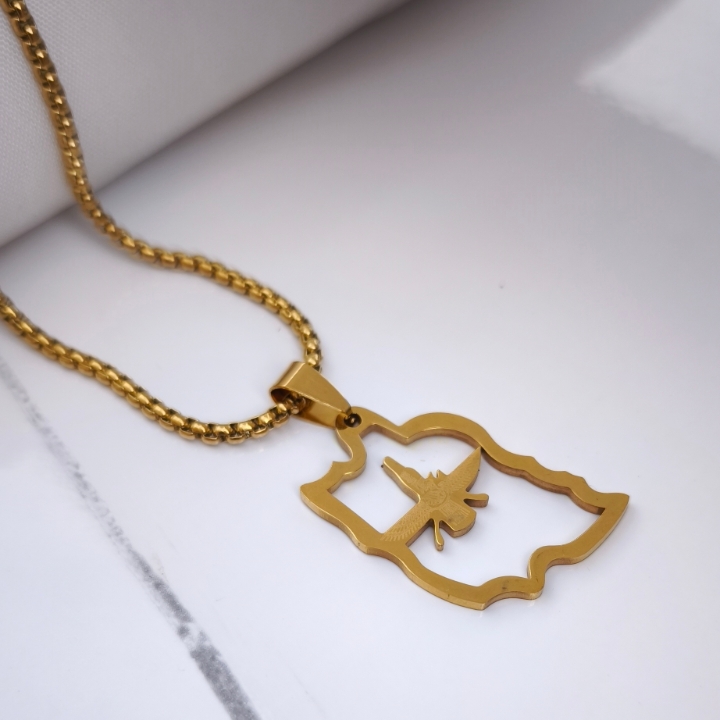 گردنبند نقشه ایران با نشان فروهر طلایی استیل همراه زنجیر ویتالی