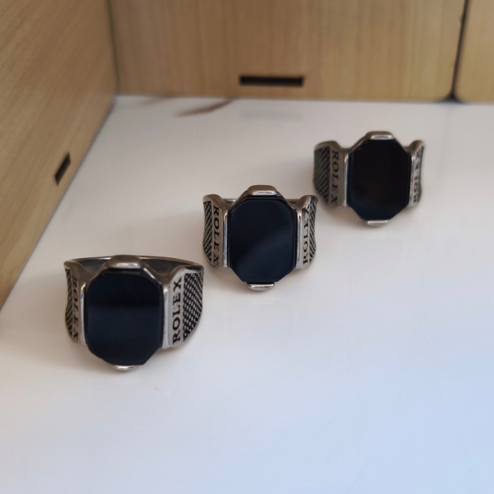 انگشتر مردانه نقره ای استیل رولکس نگینی