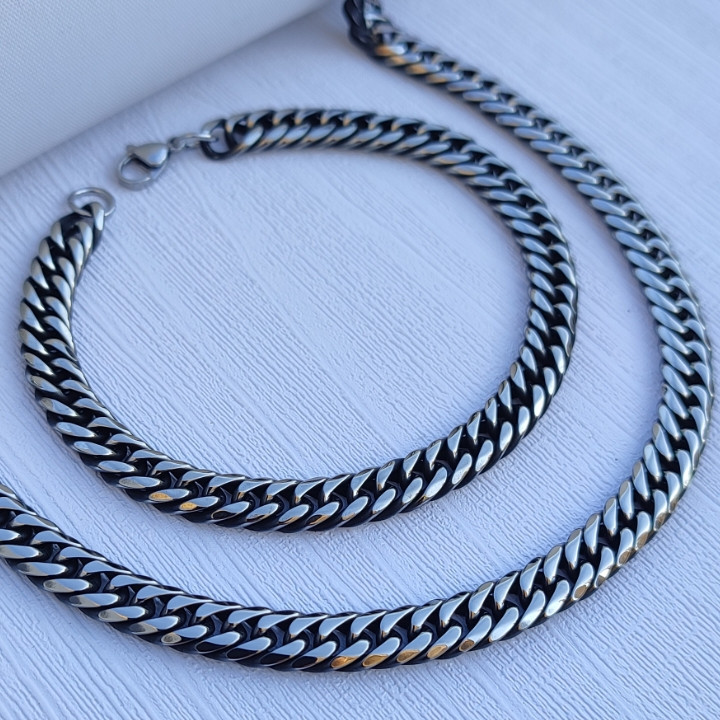 ست گردنبند و دستبند مردانه سیاه قلم ۷ میل براق