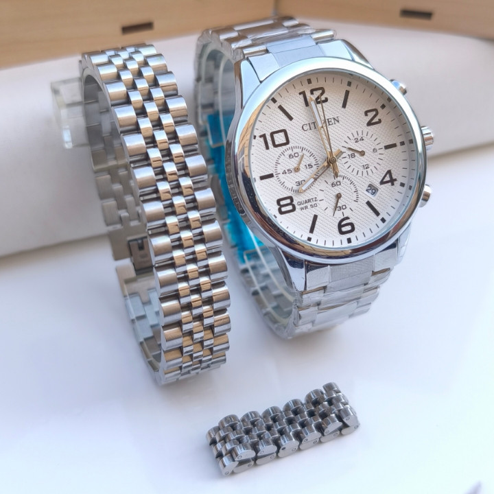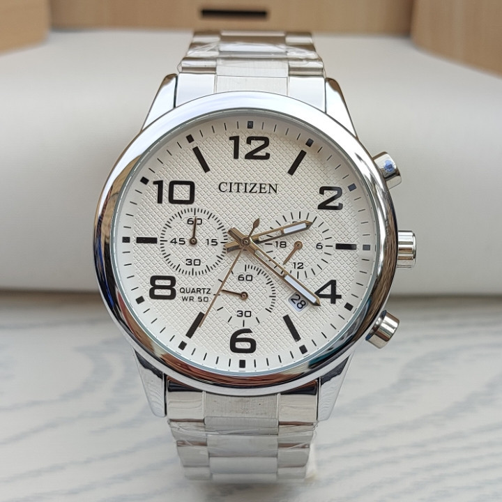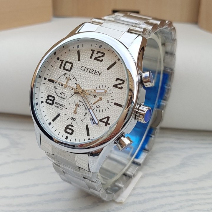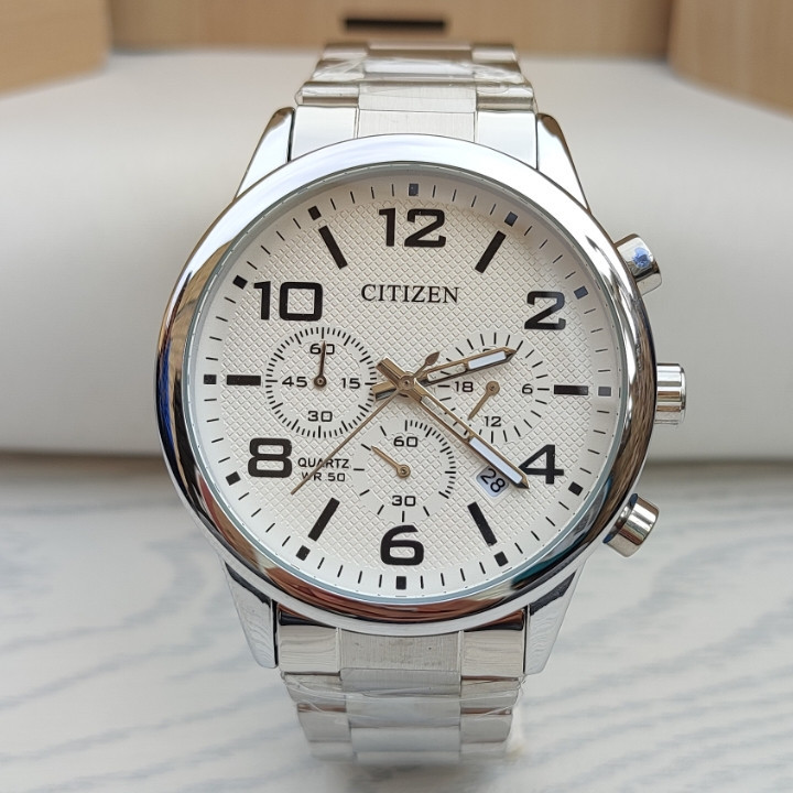 خرید ساعت مردانه صفحه سفید سه موتور استیل سیتیزن استیل